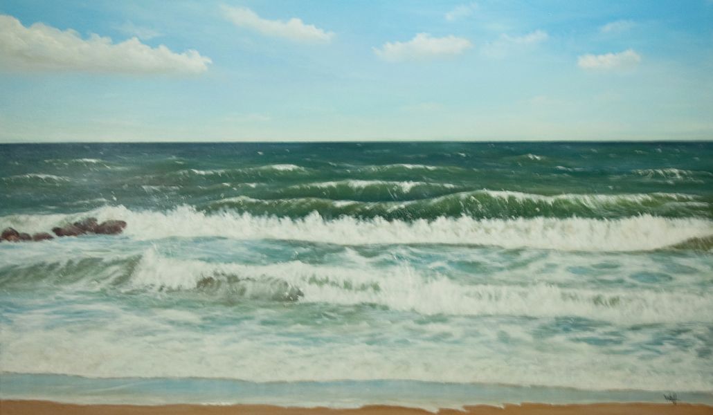 Strandabschnitt bei Hohenfelde an der Ostsee, Ölfarben auf Leinwand 80 x 40 cm.